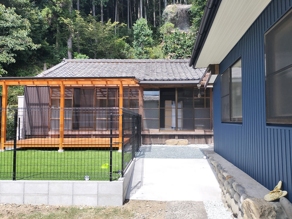家族の思い出をつなぐリノベーション。古民家はカフェへ。離れの住宅はドッグシャンプーとして新しく生まれ変わります。